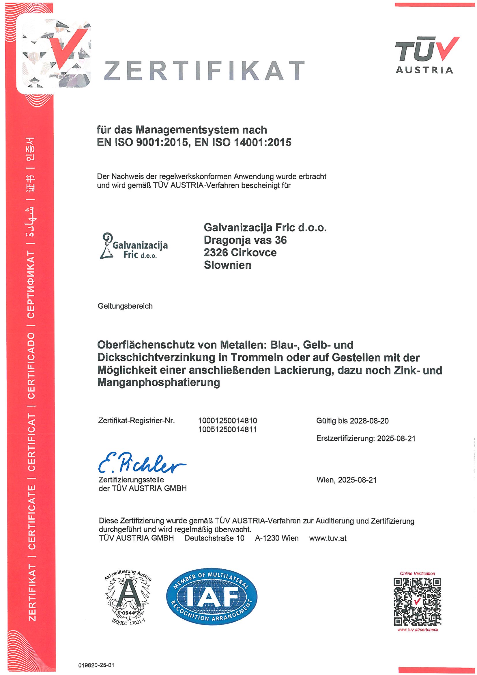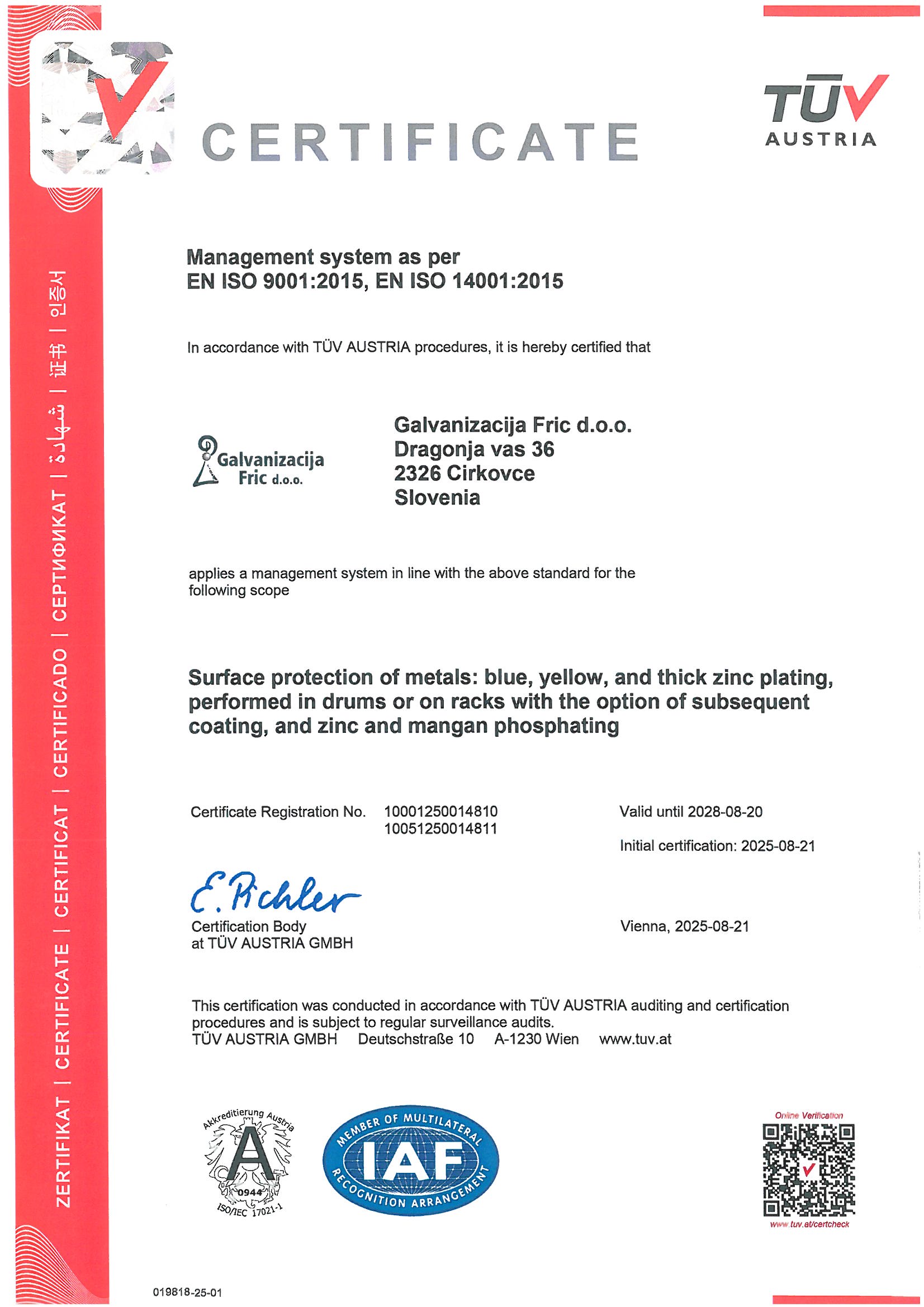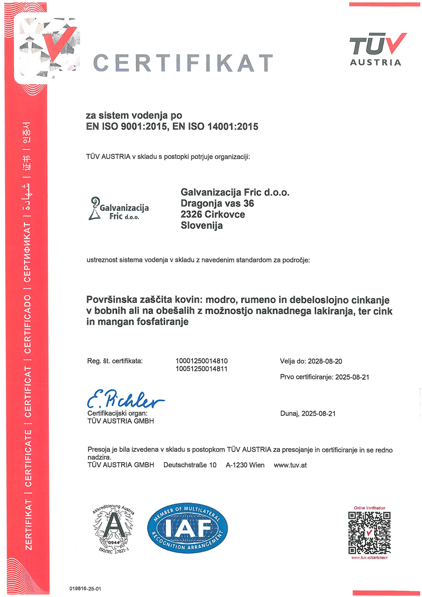 Merilo kakovosti so zadovoljne stranke, ki se redno vračajo. V Galvanizaciji Fric se nenehno trudimo, da posodabljamo svojo proizvodnjo. Sad našega dela so dolgoletne izkušnje in številni ugledni poslovni partnerji iz Slovenije in tujine.
